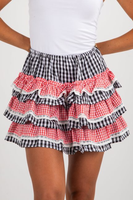 FINAL SALE – Charmed Feeling Blue Gingham Tiered Mini Skirt