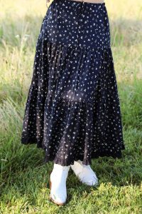 If you aim to charm, you’ll always make a cute impression in the Delightful Direction Black Floral Tiered Maxi Skirt! Featuring a flowy, tiered silhouette and a delicate floral print, this skirt moves beautifully with every step. The lightweight fabric makes it perfect for year-round wear—pair it with a fitted tank and sandals for a breezy summer look or style it with a cozy sweater and boots for cooler days. Effortlessly versatile, it’s a must-have for creating chic, feminine outfits! Lightweight Cotton Fabrication Floral Print Elastic Waistband with Functional Drawstring Tie Flowy Tiered Fit Maxi Length Eyelet Lace Bottom Hem Side Pockets Fully Lined Self + Lining: 100% Cotton Hand Wash Cold, Hang or Line Dry Models are 5’6″ and are wearing a Small.Garment Measurements in Inches:Small | Waist 26″ (Stretches up to 36″) | Hips 42″ | Length 35″Medium | Waist 28″ (Stretches up to 38″) | Hips 44″ | Length 35.5″Large | Waist 30″ (Stretches up to 40″) | Hips 46″ | Length 36″