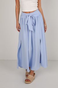 No one’s energy will be able to compete with yours when you’re flaunting the Know What To Do Maxi Skirt! Crafted from lightweight, breathable fabric, this skirt flows beautifully with every step, making it perfect for warm-weather days. The functional tie waistband ensures a customizable fit, combining comfort with feminine flair. Whether you’re dressing it up with a blouse or keeping it casual with a tank, this maxi skirt is a versatile staple for anything from beach strolls to brunch dates! Available in 2 colors. Lightweight Woven Knit Fabrication Smocked Elastic Waistband in the Back Functional Tie Front Flowy Fit Slit on Both Legs Maxi Length Fully Lined Self: 100% Polyester Lining: 50% Rayon, 50% Polyester Machine Wash Cold, Tumble Dry Low Models are 5’4″ and are wearing a Small.Garment Measurements in Inches:Small | Waist 26″ | Hips 64″ | Length 36″Medium | Waist 28″ | Hips 66″ | Length 36.5″Large | Waist 30″ | Hips 68″ | Length 37″
